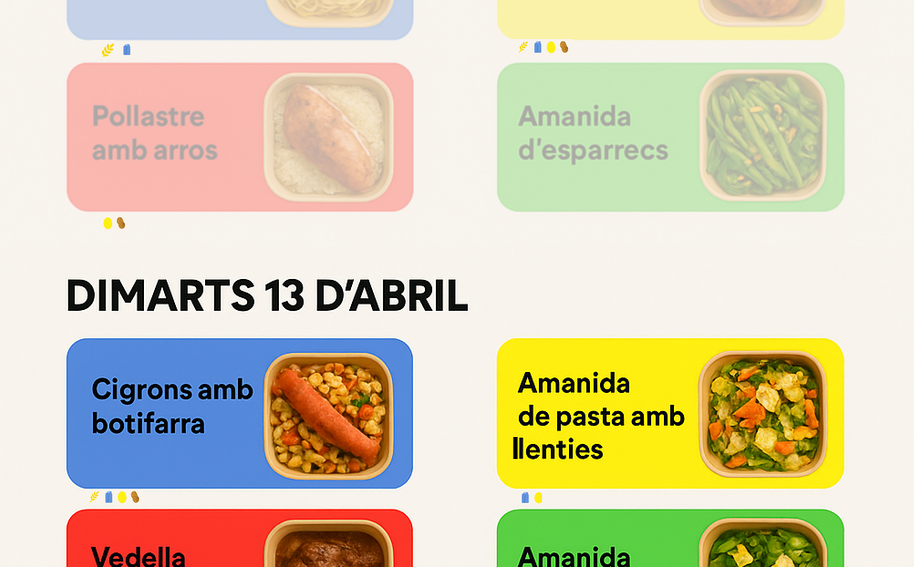 Sabem que t’encanta cuinar… quan tens temps. Deixa’ns a nosaltres ocupar-nos del dinar! Et cuidem amb menús sans, equilibrats i cuinats a diari.