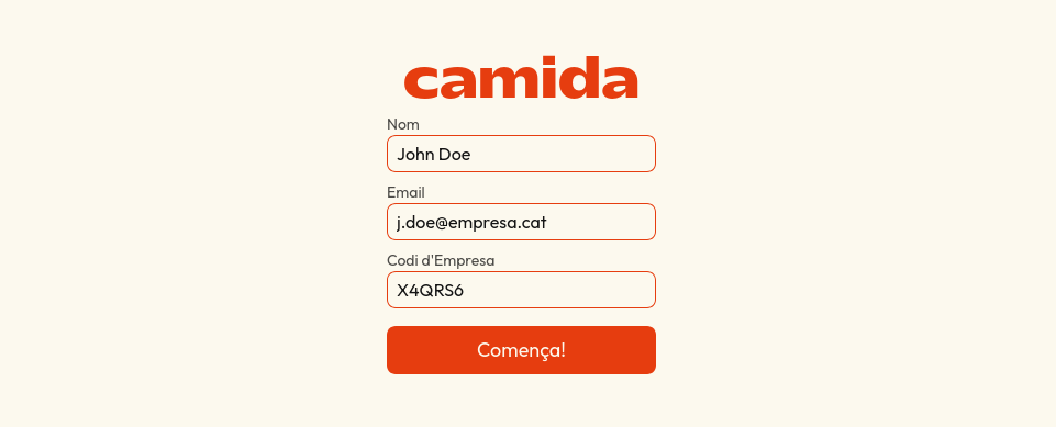 Fes-te un compte amb Camida i introdueix el codi que et proporcionarà la teva empresa.